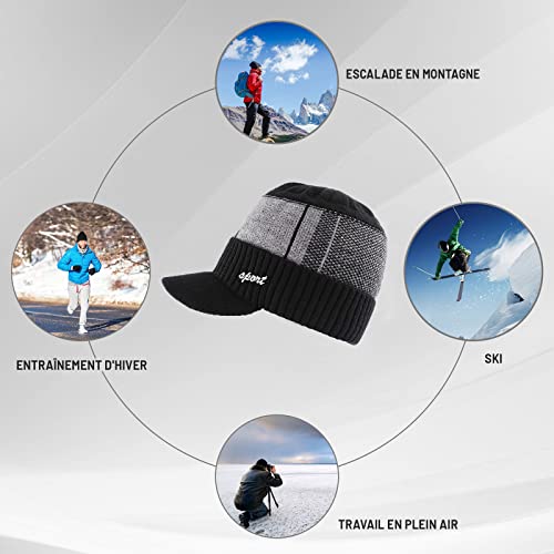 SEYUFN Cappellini da uomo invernali, maglia a maglia, in pile, elasticizzati, per sci, neve, per ragazzo, sciarpe, caldo al collo per attività in spiaggia, Cappello nero, Taglia Unica