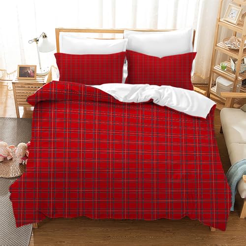 Sezhiqeu Set Copripiumino una Piazza e Mezza Geometria, Biancheria da Letto Plaid Rosso in Microfibra Morbida, 3d Copripiumino 200x200 cm e 2 Federe con Cerniera B1107