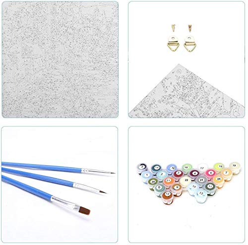 ♥ 【Dipingi per numero Confezione e dimensioni】La dimensione finale del kit disegnato dai numeri è di 16 x 20 pollici (40 x 50 cm), senza bordi. Contiene tela testurizzata prestampata (senza bordo), 3 diverse dimensioni di pennelli e 1 set di vernice acrilica.