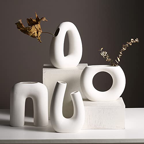 Sfeexun Vaso di ceramica bianca per fiori secchi, erba secca o Pampa Vaso d'arte moderna Vasi decorativi geometrici per la casa Boho e la decorazione del soggiorno, alto 20 cm