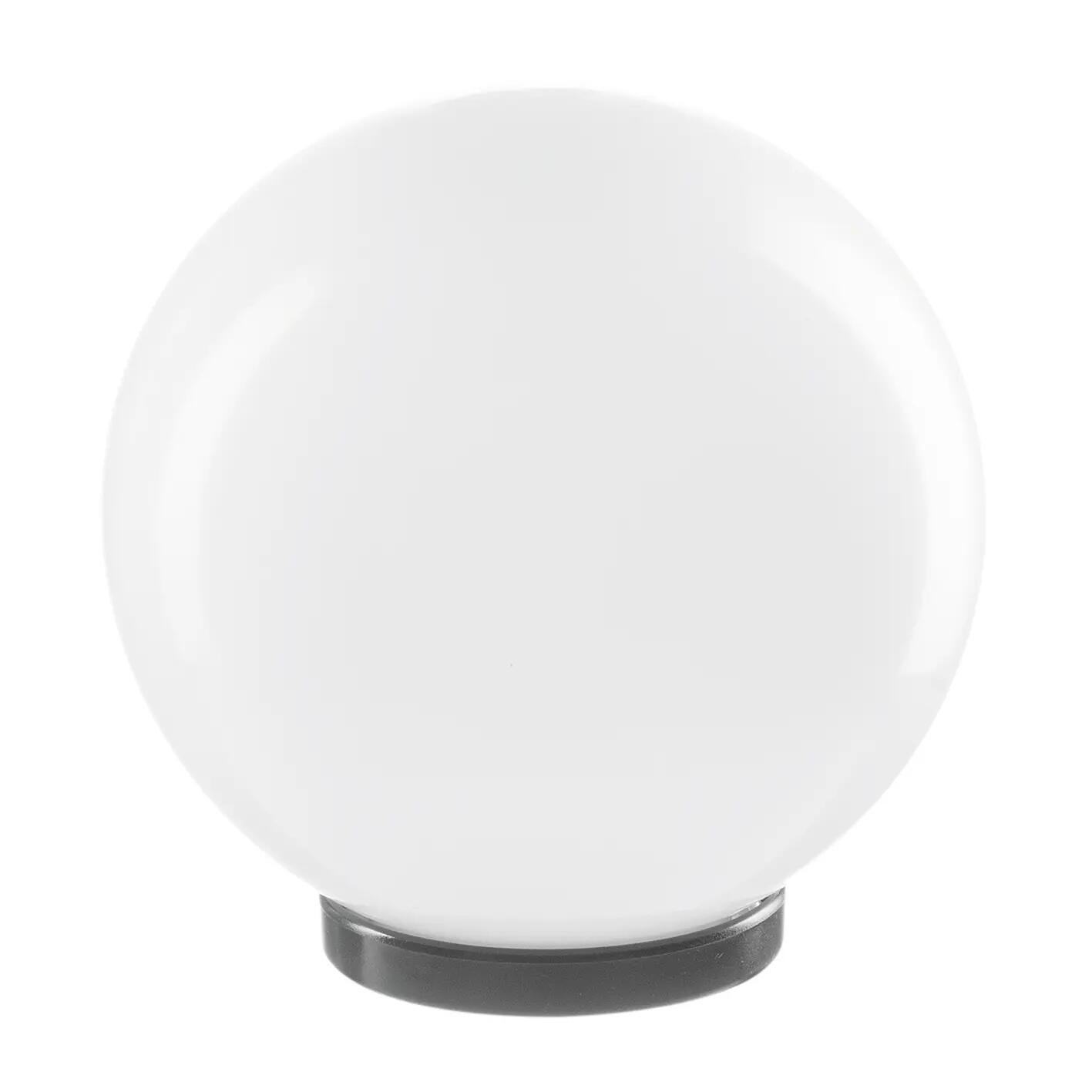 Globo per illuminazione esterna, realizzato in metacrilato opale, completo di base in policarbonato nero. Idoneo per installazione su palo o su braccio a parete dritto o inclinato. Completo di portalampada E27 in ceramica ed accessori di fissaggio. Lampadina non inclusa.. IP44: Indicato per luoghi esterni esposti a spruzzi d'acqua provenienti da tutte le direzioni. Ideale per illuminare una zona esterna con luce diffusa