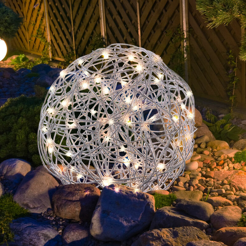 Descrizione Questa lampada solare argentata arricchisce il tuo giardino con il suo design moderno. Questa luce solare è fissata con un picchetto. Il clou è la sfera fissa con una rete metallica illuminata. Con la luce bianca calda 3000K, l'area esterna è illuminata fino a 8 ore. Grazie al grado di protezione IP44, questa lampada solare è ideale per l'uso esterno. Particolare lampada • Tipo di luce: luce solare • Materiale: plastica, alluminio • Argento • Batteria inclusa: sì • Grado di protezione: IP44 • Autonomia: circa 8 ore • Diametro x altezza in cm: 30 x 30 • Sorgente luminosa: LED • Lampadina inclusa: sì • Alimentazione lampada: 3 volt • Temperatura colore: 3000 Kelvin • Colore della luce: bianco caldo