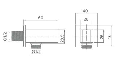 SFERA - Presa acqua quadrata supporto acqua per doccia in ottone cromato alta qualità