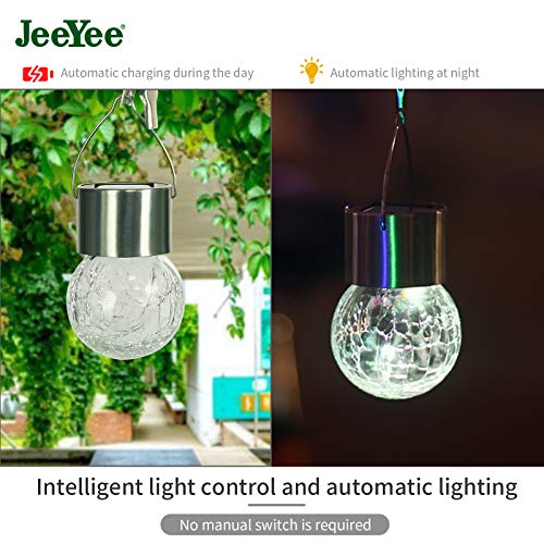 Luci solari decorative: luce a sfera di cristallo a LED con gancio in acciaio inossidabile, si può facilmente appendere su cortile, alberi o patio. Design in vetro incrinato spesso, che fornisce al tuo giardino più attivo e atmosfera, decora la tua casa.