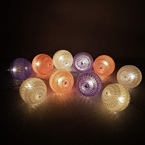 LED Sfere Luminose Cotone Sfere di Cotone Romantico, DOTBUY Batteria Ghirlanda Palla Catena di Luci per Cameretta dei Bambini, terrazza, Halloween Feste (Fata Viola,1.8M/10LED)
