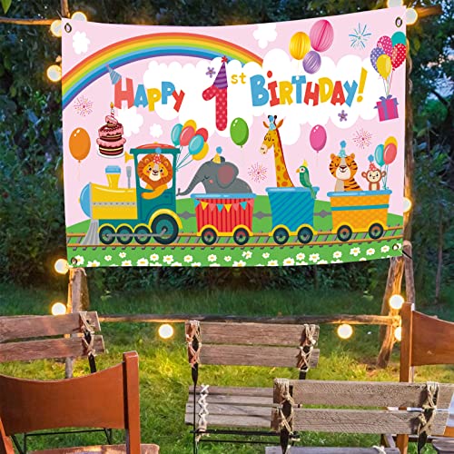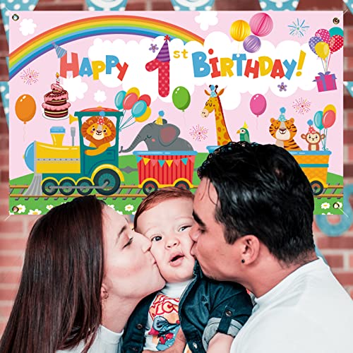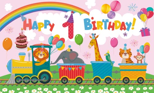 Sfondo Compleanno Animali,Banner Sfondo Buon Compleanno 1° Cartello di Compleanno Extra Large in Tessuto Poster Fotografia Sfondo Banner per Decorazioni per Compleanno 1°(70,8 x 43,3 Pollici)