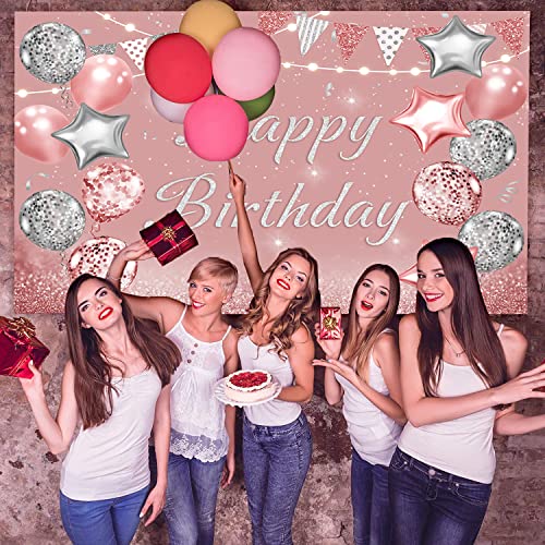 【Uso: questo sfondo fotografico a tema oro rosa rosa, con paillettes classiche, diamanti, carattere di buon compleanno, altri elementi, può essere adatto per varie occasioni, come feste di compleanno, feste di donna, baby shower, vacanze, battesimi, o da utilizzare come carta da parati, tende, arazzi, tovaglie, decorazioni per la casa, ecc. per aggiungere atmosfera alle prossime forniture per feste di compleanno