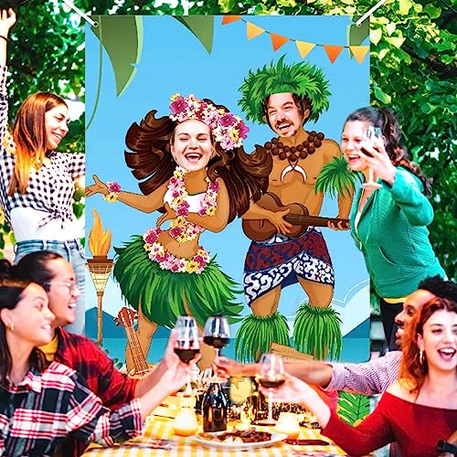 【Puntelli per Feste Divertenti】Sfondo di festa hawaiana progetta una simpatica cabina fotografica con uno sfondo adatto per selfie perfetti, appendi questo banner per porta foto di coppia luau al tuo evento tropicale per una divertente opportunità fotografica.