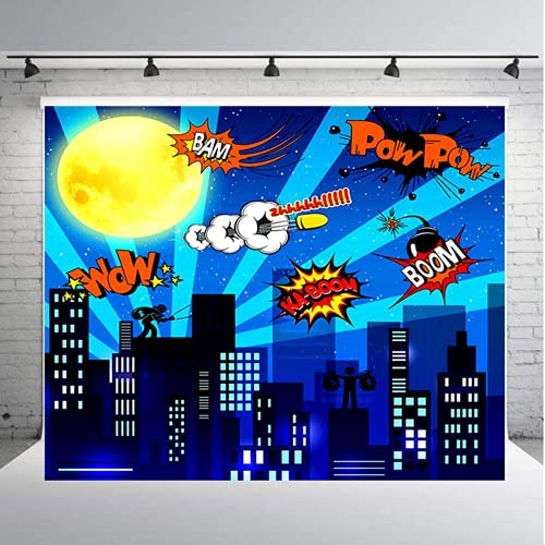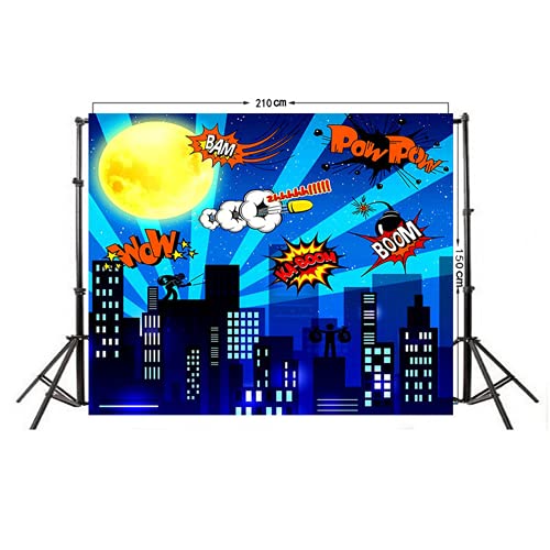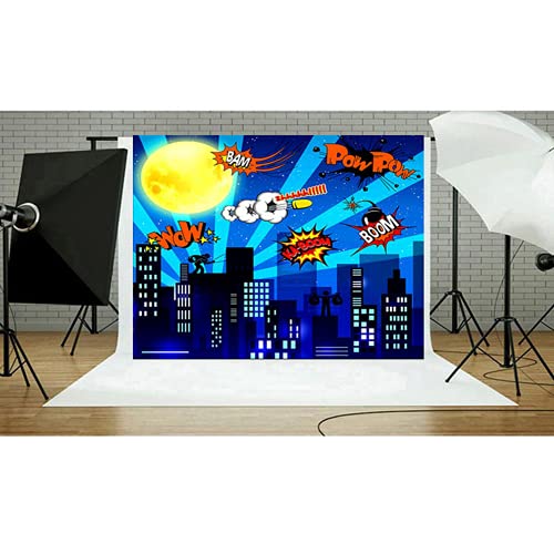 Sfondo di Supereroi,Supereroe Compleanno Foto Sfondo 2,1 x 1,5 m Cityscape Backdrop Per Bambini Festa Fotografia Sfondo