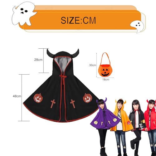 【Design perfetto】Il mantello del diavolo per bambini ha un corno nella parte superiore e un'esclusiva stampa di zucca sui vestiti,4 colori del puoi scegliere,allo stesso tempo è con squisiti sacchetti di caramelle alla zucca.