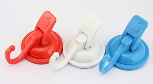 SFTlite, gancio per asciugamano con ventosa resistente, il gancio regge fino a 6,8 kg, per la cucina e il bagno, in 3 pezzi, rosso - bianco - blu