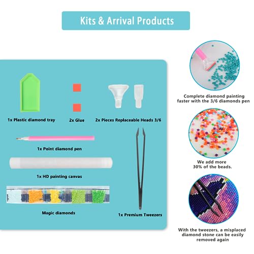 ✅ 【Facile da Dipingere Grazie alla Tela HD e agli Strumenti Multipli】il processo de painting diamond paint diamond è molto semplice grazie ai simboli chiari su tela ad olio per stampa ad alta trasparenza e agli strumenti multipli, inclusi nella nostra gamma di accessori.È possibile utilizzare 3/6 strass in una sola volta e posizionarli in linea retta sulla tela. Questo accelera il riempimento di grandi blocchi di colore. Con le pinzette puoi rimuovere facilmente una pietra diamantata sbagliata