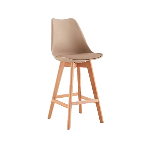 Sgabelli bar cuccina ristorante Set 2 Sgabelli in polipropilene, seduta in ecopelle e gambe in faggio (2, TORTORA)