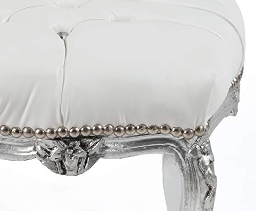 Sgabello Barocco Foglia Argento Piccolo Bianco