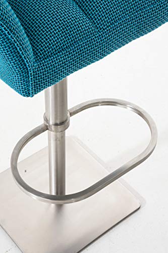 CLP Sgabello Alto Bar Damaso I Sgabello Design Trapuntato Cucina In Stoffa Con Braccioli E Schienale Imbottiti, Colore:turchese, Colore del telaio:acciaio inossidabile
