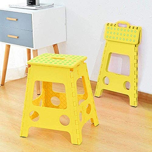 Sgabello Doccia Plastica Pieghevole Sgabello da Cucina Pieghevole Passo Sgabello Ampio Bagno Adulti Doccia Sedile Stool 45 cm di Altezza poggiapiedi, Giallo