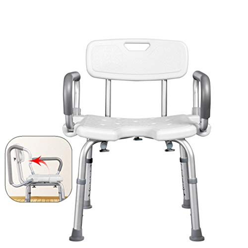 Sgabello Doccia Sedia per Doccia con braccioli Imbottiti e Schienale, Sedia elevabile Bianca con braccioli per Vasca, per disabili, Anziani Handicap per Adulti