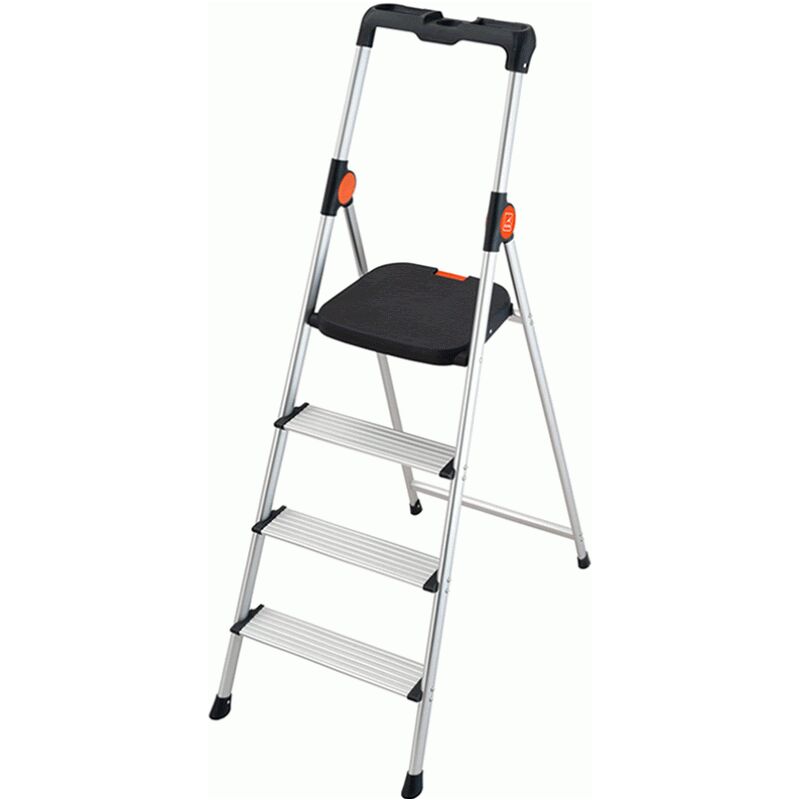 Lo sgabello “Dekorstep” Gierre a 4 gradini ha la struttura in alluminio anodizzato, la grande piattaforma in plastica e una vaschetta porta-oggetti che fa invidia alle scale più dotate! Essendo in alluminio anodizzato, non sporca le mani. E' leggerissimo e quando è chiuso basta uno spazio largo 10 cm per riporlo. Il gradino è più comodo rispetto ai soliti sgabelli - 10 cm - e lo spazio utile tra i montanti è del 30% superiore alla media, perciò è molto comodo per i lavori di casa. A completare il tutto, i piedini sono antiscivolo zigrinati e la piattaforma in plastica ha un sistema di apertura e chiusura facile, sicuro e veloce. portata massima: (kg) 150 altezza massima di lavoro: (mt) 2,93 dimensioni prodotto: (mt) 1.51x0.53x0.94 dimensione massima base scala aperta doppia: (m) 0.94 altezza massima del gradino più alto o della piattaforma: (mt) 0.93 altezza massima prodotto aperto: (mt) 1.51 lunghezza del prodotto tutto chiuso: (mt) 1,67 peso senza imballo: (kg) 5.40 materiale