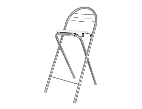 FHU - Sgabello pieghevole da bar con schienale e poggiapiedi, 79 cm, colore: bianco