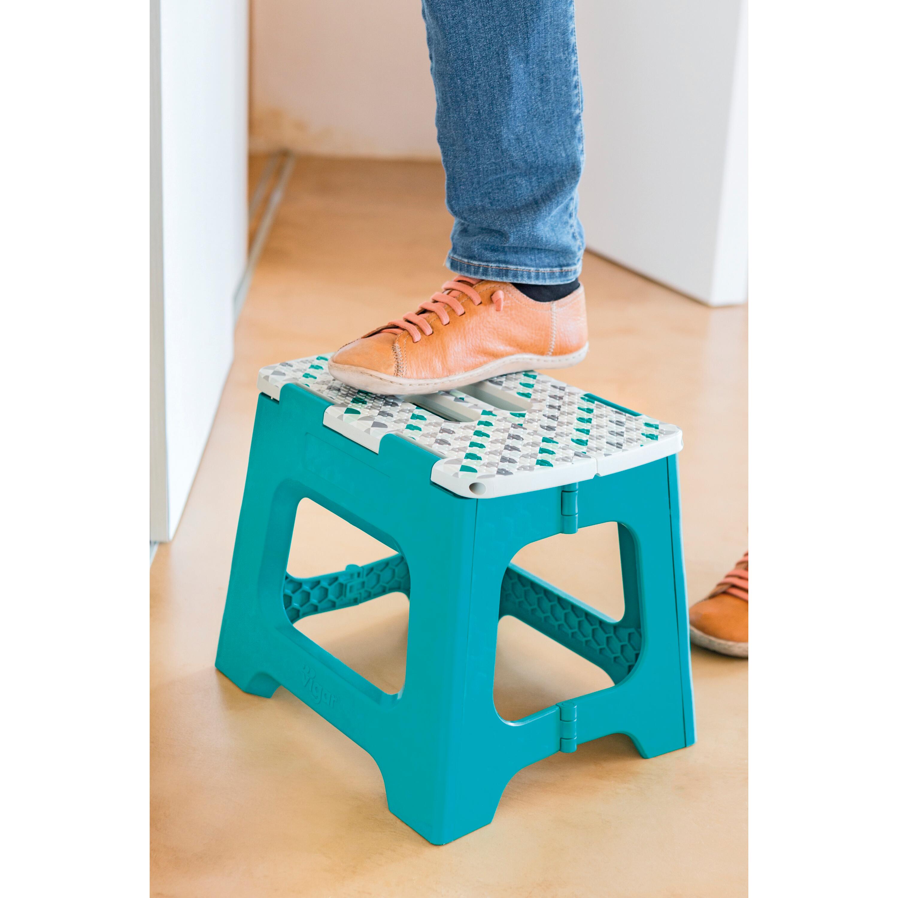 Sgabello pieghevole H 27 cm. Meravigliosamente versatile e di immediato utilizzo, questo sgabello è ideale per raggiungere diverse altezze e facilitare i lavori domestici, ma anche per sedersi. È dotato di un meccanismo di chiusura che consente di ripiegarlo e riaprirlo in un solo gesto. Una volta chiuso, presenta uno spessore di soli 3 cm ed è possibile riporlo dietro alla porta, appenderlo nell'armadio o collocarlo ovunque tu voglia per salvare spazio! Inoltre grazie alla maniglia incorporata, è possibile trasportarlo con enorme facilità. Peso max consentito 150 KG. È dotato di una superficie zigrinata e di piedini in gomma anti-scivolo. Certificato EN-14183. Fabbricato con plastica riciclata. Pluripremiato nei più prestigiosi contests internazionali del design! ATTENZIONE leggere le istruzioni prima dell'uso!