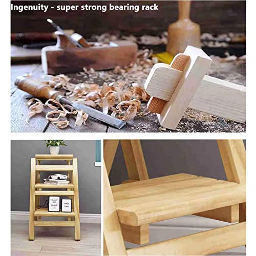 Sgabello Scala in Legno di Legno Massiccio Naturale Richiudibile Salvaspazio - Scaletta 2 Gradini Sgabello Pieghevole Legno