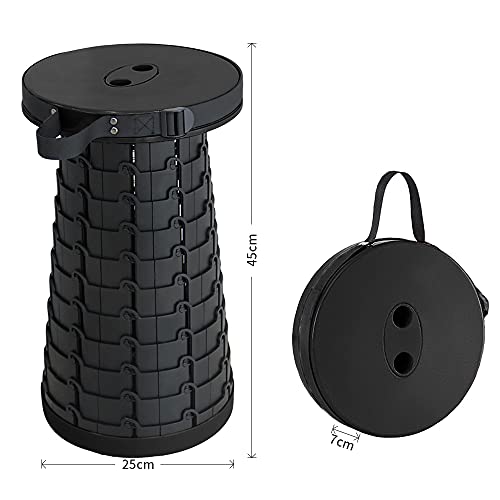 Sgabello Telescopico Portatile, ZoneYan Portatile Sgabello Telescopico Plastica, Sgabello Campeggio Regolabile, Sgabello Telescopico da Esterno, per Pesca Campeggio Interna (Portante150 kg) (Black)