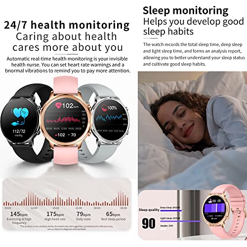 【1,32 Pollici Touch Screen Completo】 SGDDFIT smartwatch Donna adotta un grande schermo a colori ad alta definizione TFT da 1,32 pollici, alta risoluzione 360 * 360. la tecnologia touch screen completa rende il tuo funzionamento facile e veloce. con 5 livelli di luminosità, è anche possibile regolare la luminosità per vedere chiaramente il display. ci sono multiplo tra cui scegliere, puoi anche personalizzare il quadrante per mostrare la tua personalità.