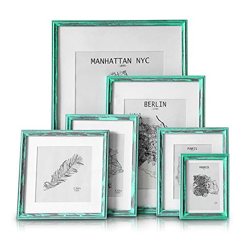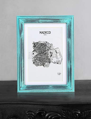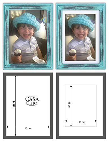 Shabby Chic Cornice 13x18 cm Turchese-Argenta - Passepartout per Foto 10x15 cm Incluso - Larghezza della cornice 2 cm! - Turchese-Argento Antico