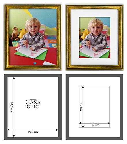 Shabby Chic Cornice 20x25 cm Oro - Passepartout per Foto 13x18 cm Incluso - Vetro temperato - Larghezza della cornice 2 cm! - Oro Antico
