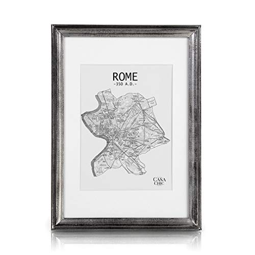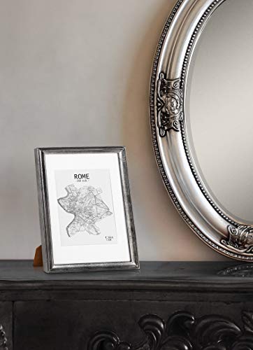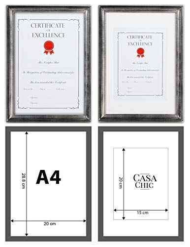 Shabby Chic Cornice A4 Argento - Passepartout per Foto 20x15 cm Incluso - Vetro Temperato - Larghezza della Cornice 2 cm! - Argento Antico
