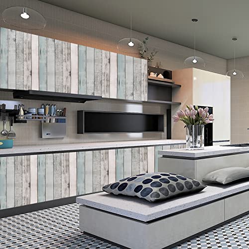 Shackcom Carta da Parati Autoadesiva Vintage 44.5x600cm PVC Carta da Parete in Righe in Legno Impermeabile Rimuovibile per Decorare Cucina Camera da Letto Soggiorno-004Z