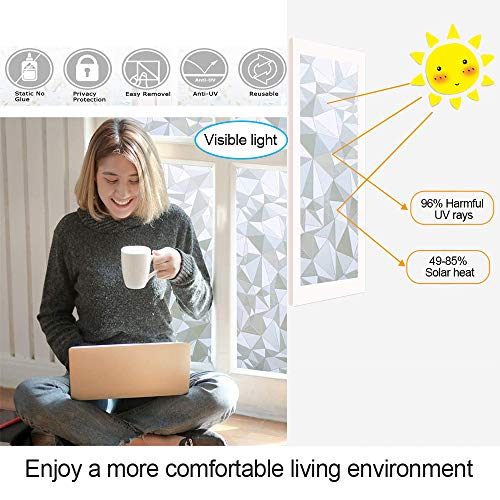 Shackcom Pellicola per Finestre Vetri Pellicola Finestre 44.5x200CM Non Trasparente la Tutela della Vita Privata Controllo di Calore Anti-UV per Bagno Cucina- Motivo a Rombi poligonali-J014