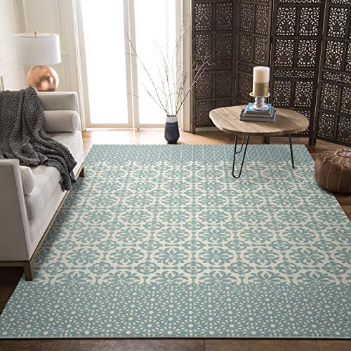 SHACOS Tappeto in Cotone Grande Stampa Verde Acqua Tappeti 120x180 cm Lavabile in Lavatrice Tessuto a Mano Tappeto per Soggiorno, Camera da Letto