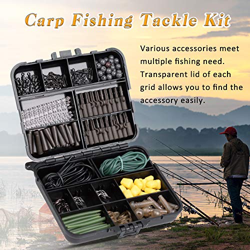 【 enorme kit di accessori da pesca alla carpa 】 307 pezzi con quasi tutti gli accessori per la pesca alla carpa, ami da pesca, perline, rocchetto di zucchero, ghiaia, clip per setale, esche boilie, tubi di RIG, ecc. È completamente adattabile a tutto il necessario per la pesca alla carpa.