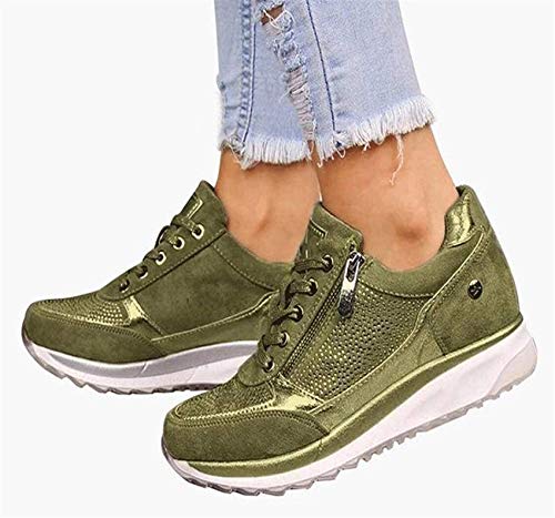 SHADIOA Sneakers da spose da Donna 2021 Wedge Shoes Flat Shoes Zipper Lace Up Confortevole Sneakers Sneakers Scarpe vulcanizzate Femminili,Verde,36