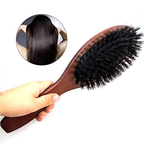 Shager - Spazzola per capelli con setole in cinghiale naturale e legno pneumatico, ovale, antistatica, per il massaggio del cuoio capelluto, impugnatura in legno di faggio, 22 x 6,5 cm