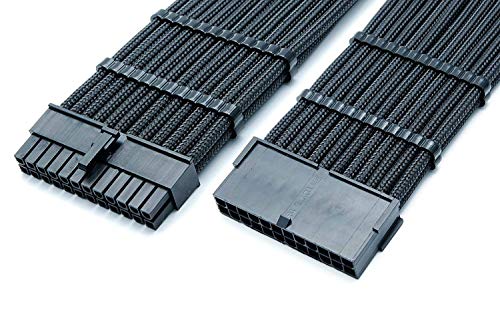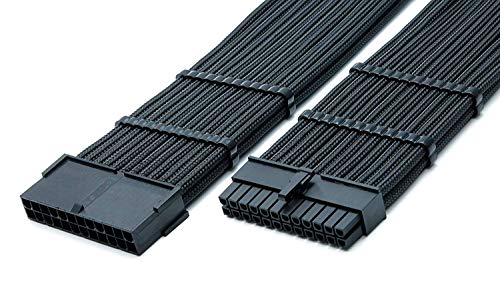 Shakmods - cavo di prolunga con guaina a 24 pin per scheda madre ATX, 30 cm, colore nero, con 2 pettini per cavo in omaggio