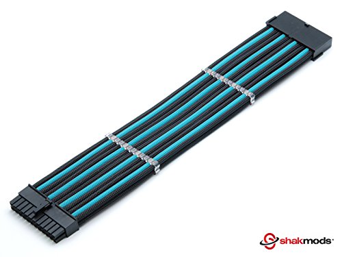 Shakmods 24 pin ATX scheda madre azzurro & nero Heatshrinkless maniche cavo di prolunga con cavo schermato 2 pettine 30 cm