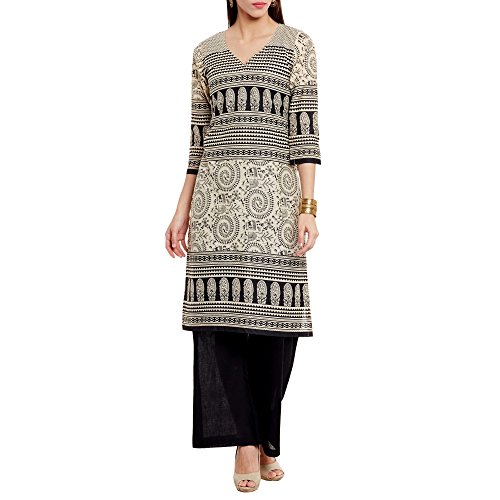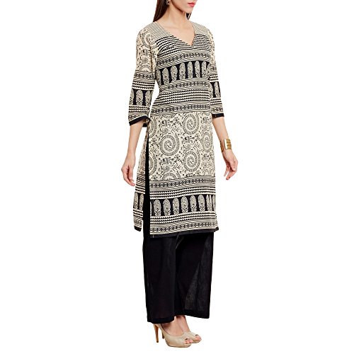 ShalinIndia Puro Cotone Donne Etnico Lungo Kurta di Top con Plazzo, Nero Nero XXXXL