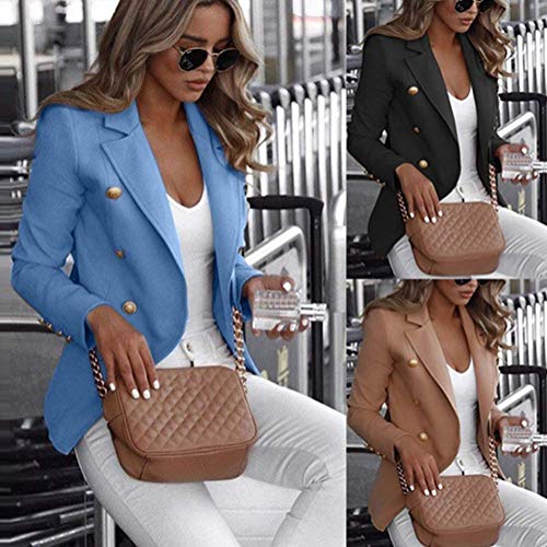 Shallood Donna Manica Lunga Colletto Cappotto Elegante Ufficio Business Blazer Top Tinta Unita Slim Fit Giacca con Pulsante Corto OL Carriera Tailleur Giacca (52, A Nero)
