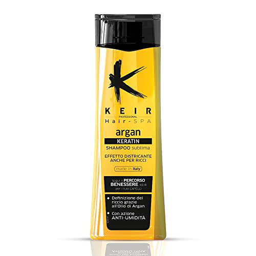 KEIR Shampoo Argan Keratin - Contrasta la Secchezza dei Capelli Ricci - con Creatina per Effetto Districante e Olio d'Argan - Contrasta l'Effetto Crespo - 250ml