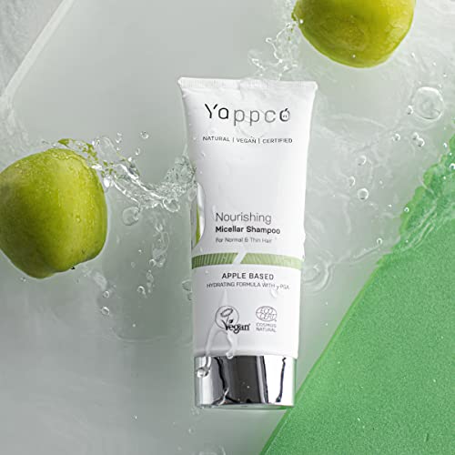 Shampoo Capelli Fini e Normali Formula Micellare Shampoo Idratante Volumizzante e Nutriente Cosmetici Naturali a Base di Mele e y-PGA | Vegan | Ecocert | Cruelty Free | Yappco | 200 ml