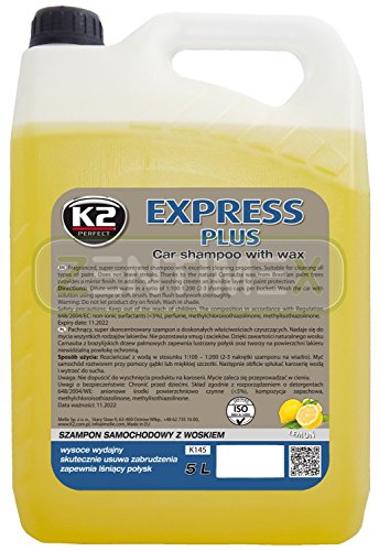 Shampoo auto concentrato lavaggio lavaggio medio di liquido detergente per auto finitura a specchio auto cura Autoreinigung lavaggio a mano PKW Carrozzerie di pulitore insetti rimozione Teerentferner tutti i tipi di vernice (normale/metallische lacke) ergiebig hautneutral con cera di carnauba 5L Lemon Limone Agrumi Profumo di agrumi Tanica