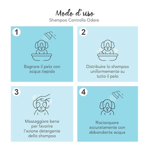 MODO D'USO: Distribuire la dose sufficiente di prodotto sul pelo precedentemente bagnato, massaggiare vigorosamente la cute e distribuire sul manto, sciacquare con abbondante acqua. Solo per uso esterno. Da utilizzare solo sulla cute sana.
