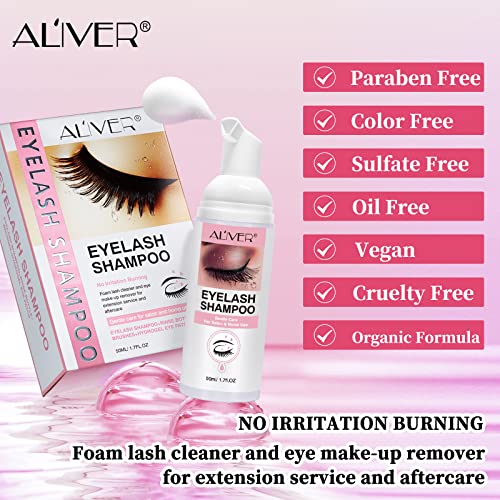 Shampoo per extension ciglia 50 ml + flacone di risciacquo + pennelli + benda idrogel per occhi - Detergente schiumogeno per palpebre, senza parabeni e solfati