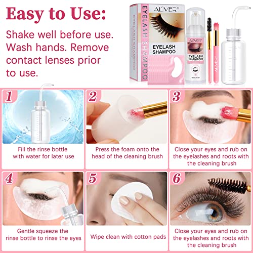 ✔ 【Shampoo per ciglia】 Questo shampoo per allungare le ciglia viene fornito con shampoo da 50 ml, patch per gli occhi in idrogel da 10 pezzi, pennello per mascara, pennello per la pulizia e flacone per risciacquo da 150 ml. Lo shampoo per ciglia rimuove efficacemente lo sporco, l'olio e il trucco per mantenere ciglia e palpebre sane e prolungare la durata delle extension per ciglia.