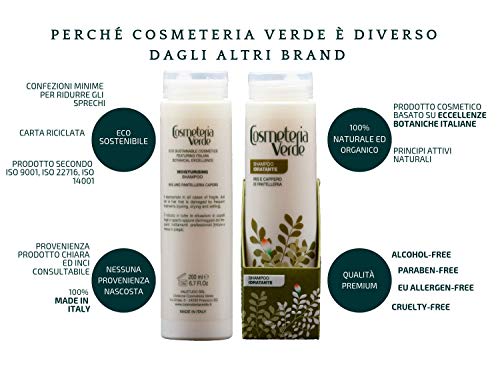 Shampoo Idratante Cosmeteria Verde - Nutre e Ristruttura completamente la superficie esterna del capello | Indicato per capelli Fragili, Opachi e Danneggiati | Testato per Uomo e Donna