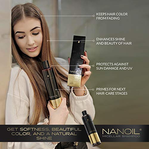✅ CAPELLI MORBIDI COME SETA. Questo shampoo è una fonte delle proteine migliori per i capelli, e aiuta a renderli più belli e migliorare la loro condizione. Lo Shampoo Micellare Alla Seta Liquida Nanoil idrata, protegge dai raggi UV e previene lo scolorimento della tinta.