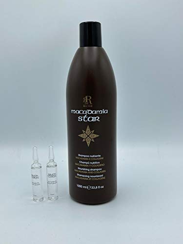 SHAMPOO NUTRIENTE MACADAMIA STAR, 1000 ML, RR REAL STAR, 2 FIALE TRATTAMENTO RISTRUTTURANTE 10 ML in Omaggio
