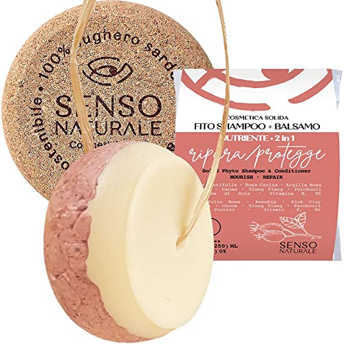 Shampoo Solido NUTRIENTE riparatore capelli secchi, doppie punte - nutre capelli danneggiati - Ecologico e Vegano - rosa canina, argilla rosa, ylang ylang - ph 4.5-5.5 (2 in 1) + CONTENITORE
